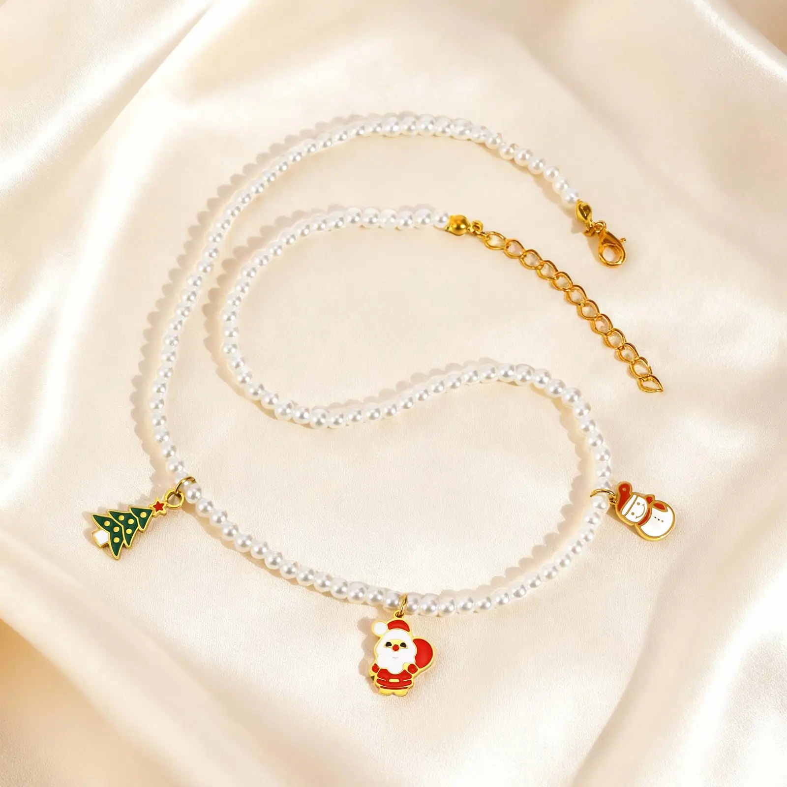 Exquisite Santa Claus Christmas Tree Snowman Necklace,Women's Imitation Pearl Beaded Necklaces,Fashion Christmas Jewelry Gifts